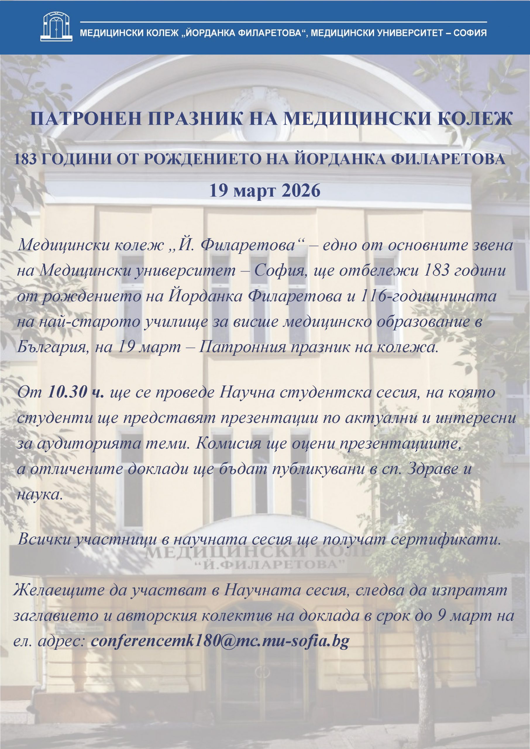 ПАТРОНЕН ПРАЗНИК НА МЕДИЦИНСКИ КОЛЕЖ – 19.03.2026