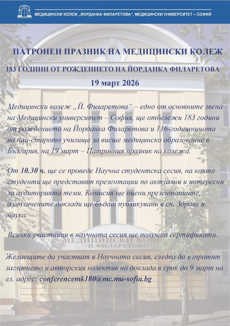© Медицински колеж „Й. Филаретова“ – София  2026          |            Защита на личните данни (GDPR)